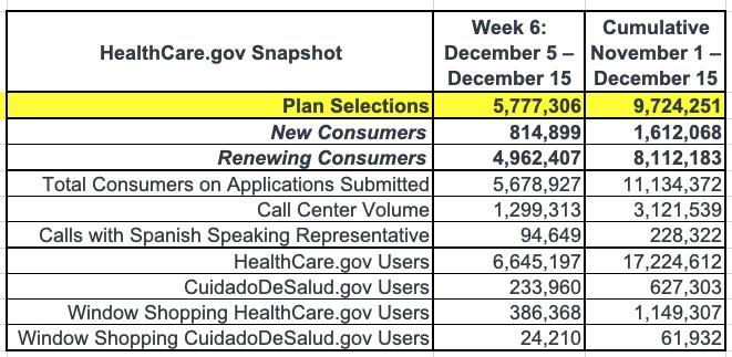 2022 OEP Week 6 HC.gov Snapshot Report: 9.72M enrollees so far; up 21% year over year!
