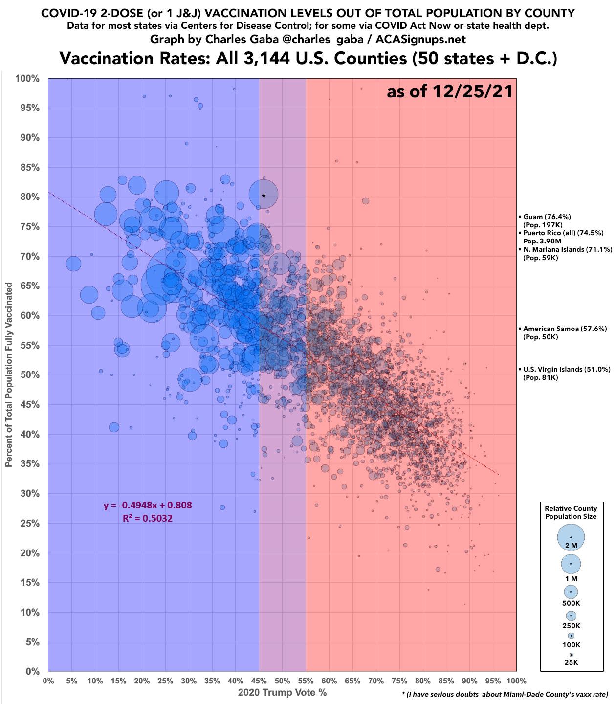 Weekly Update: U.S. #COVID19 vaccination levels by COUNTY & Partisan Lean