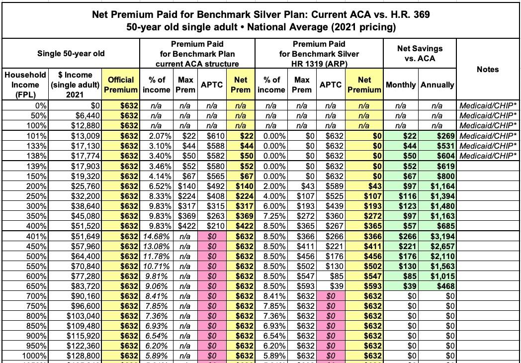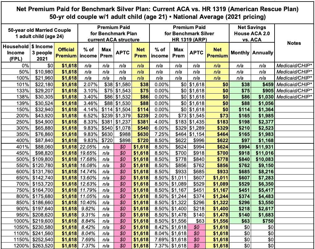 In this version I'm using the actual Advanced Premium Tax Credit (APTC) table under the American Rescue Plan, and I'm cutting out all references to the other two tables to avoid confusion.