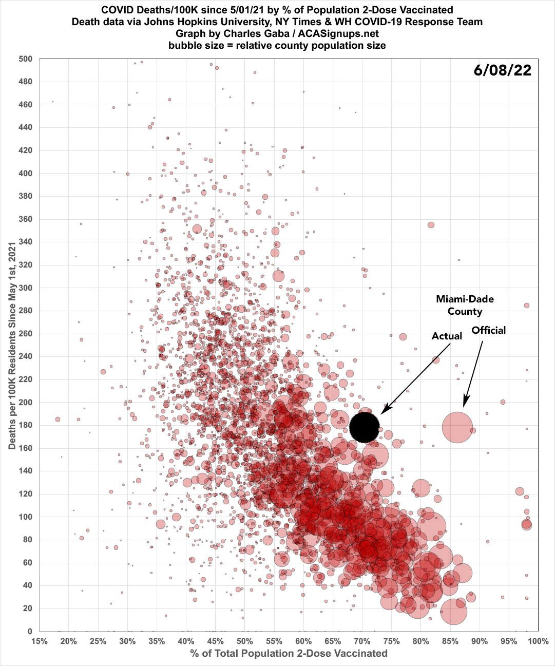 My conclusion at the time was that the actual 2-dose vaccination rate of residents of Miami-Dade County was at least 331,000 fewer than the official tally for the county...or just 72.4% as of late March 2022, as opposed to the official vaccination rate of 84.7%.