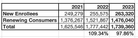 Hmmmm...the 1.74M figure is also what they had reported near the end of January when there were only a few days left of Open Enrollment. I was expecting the final grand total to come in around ~40K higher, but apparently not.