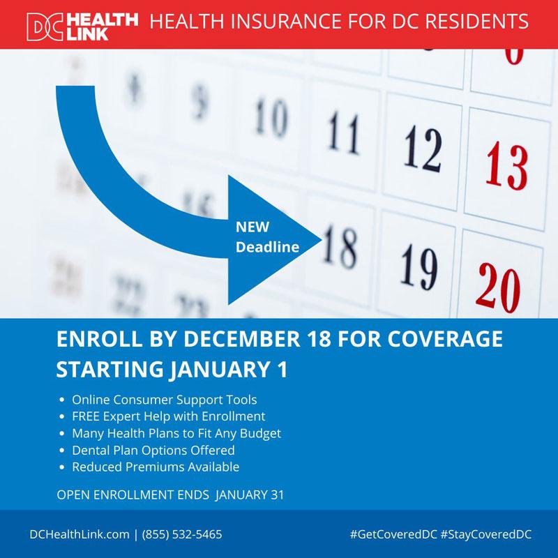 District of Columbia jumps on the Deadline Extension bandwagon: Enroll by 12/18 for January coverage!
