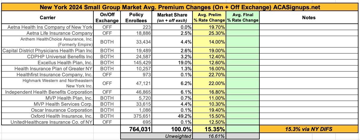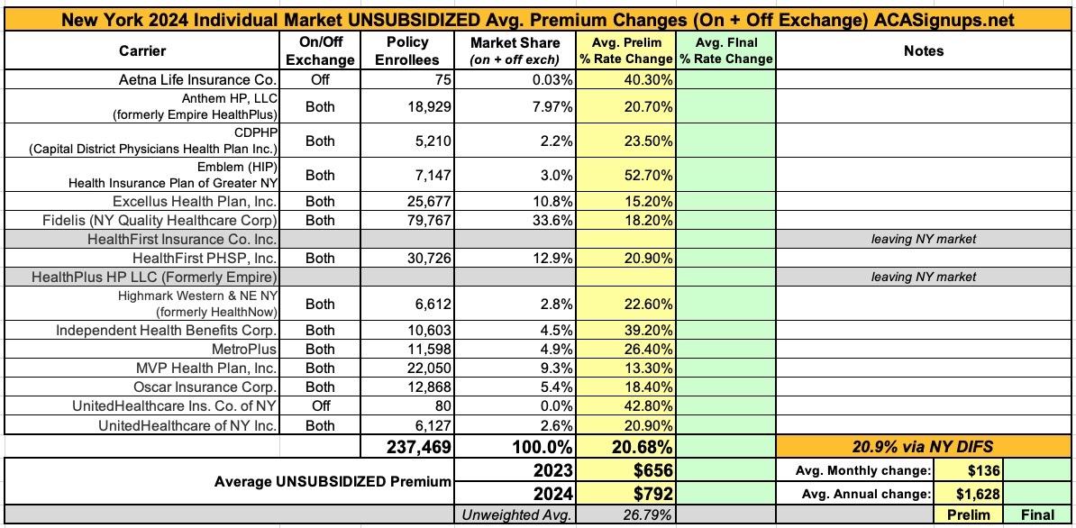 New York: (Preliminary) avg. unsubsidized 2024 #ACA rate change: +20.9%