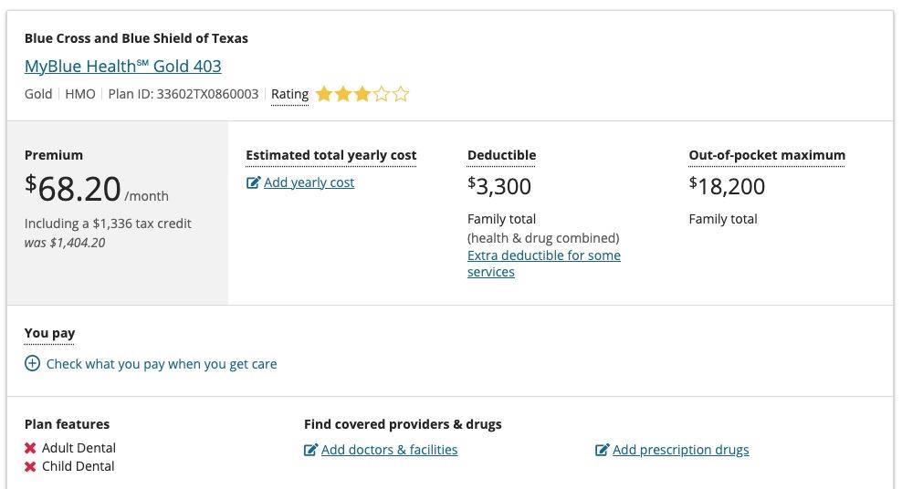 The thing is, this Bronze plan would be a terrible choice for them anyway. They'd be much better off choosing the Gold BCBSTX plan: