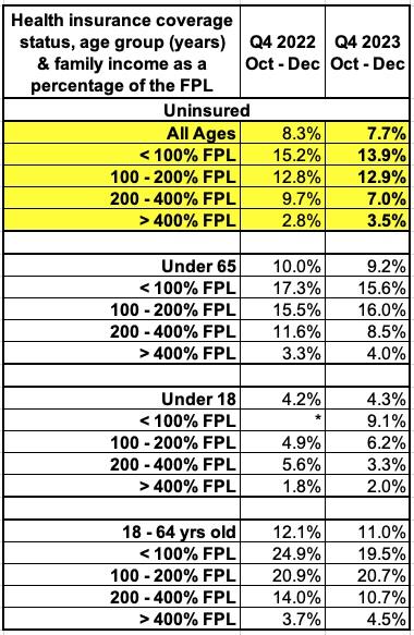 With all of this in mind, let's take a look at the National Health Interview Survey Early Release of Quarterly Estimates, Oct. 2022 - Dec. 2023: