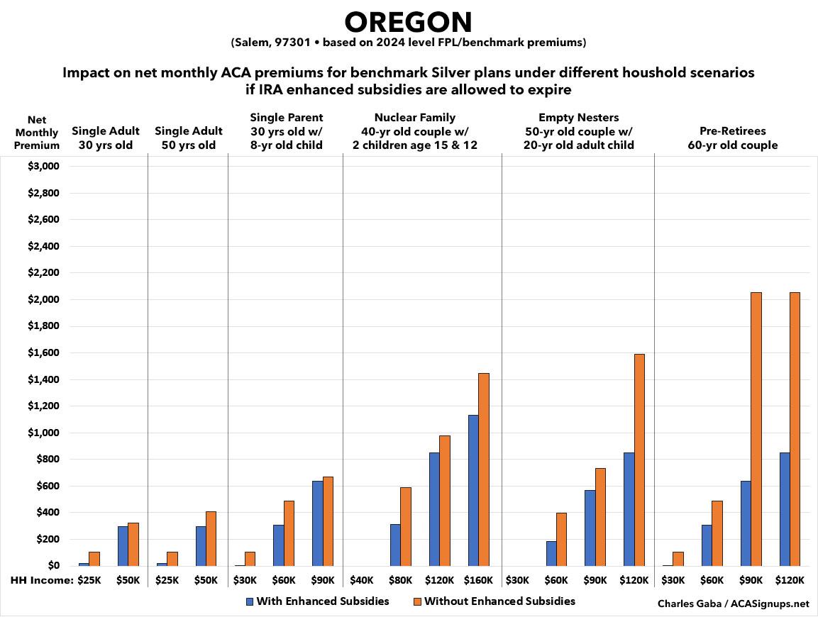 That's the macro level, however. As I did a couple of years ago when the subsidies were originally at risk of expiring in 2023, I decided to run the numbers myself to get an idea of just how much enrollees real-world health insurance premiums would go up in the event the ARPA/IRA subsidies are indeed allowed to expire at the end of next year.