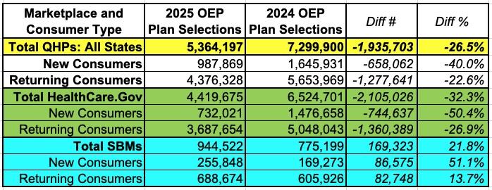 Huh? How could that be? From the initial numbers, it looks like the 2025 OEP is off to an ugly 26.5% drop in enrollments...