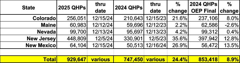 Update 12/20/24: MNsure (Minnesota's ACA exchange) just reported a 14% y/y increase through their 12/18 deadline for January 1st coverage.