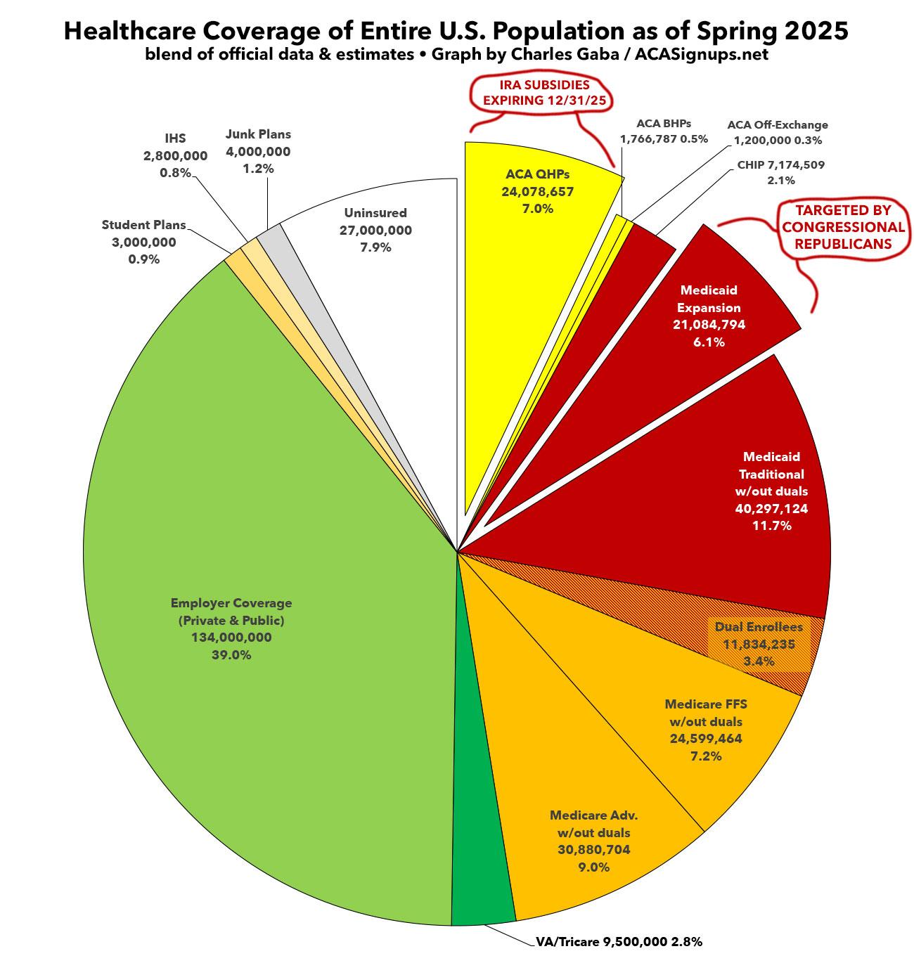 This post is getting pretty lengthy, so I'll address the "work reporting requirement" scheme (as well as the looming expiration of the ACA's IRA subsidies) separately, but in the meantime, here's what targeting the ACA Medicaid expansion portion of the population looks like nationally.