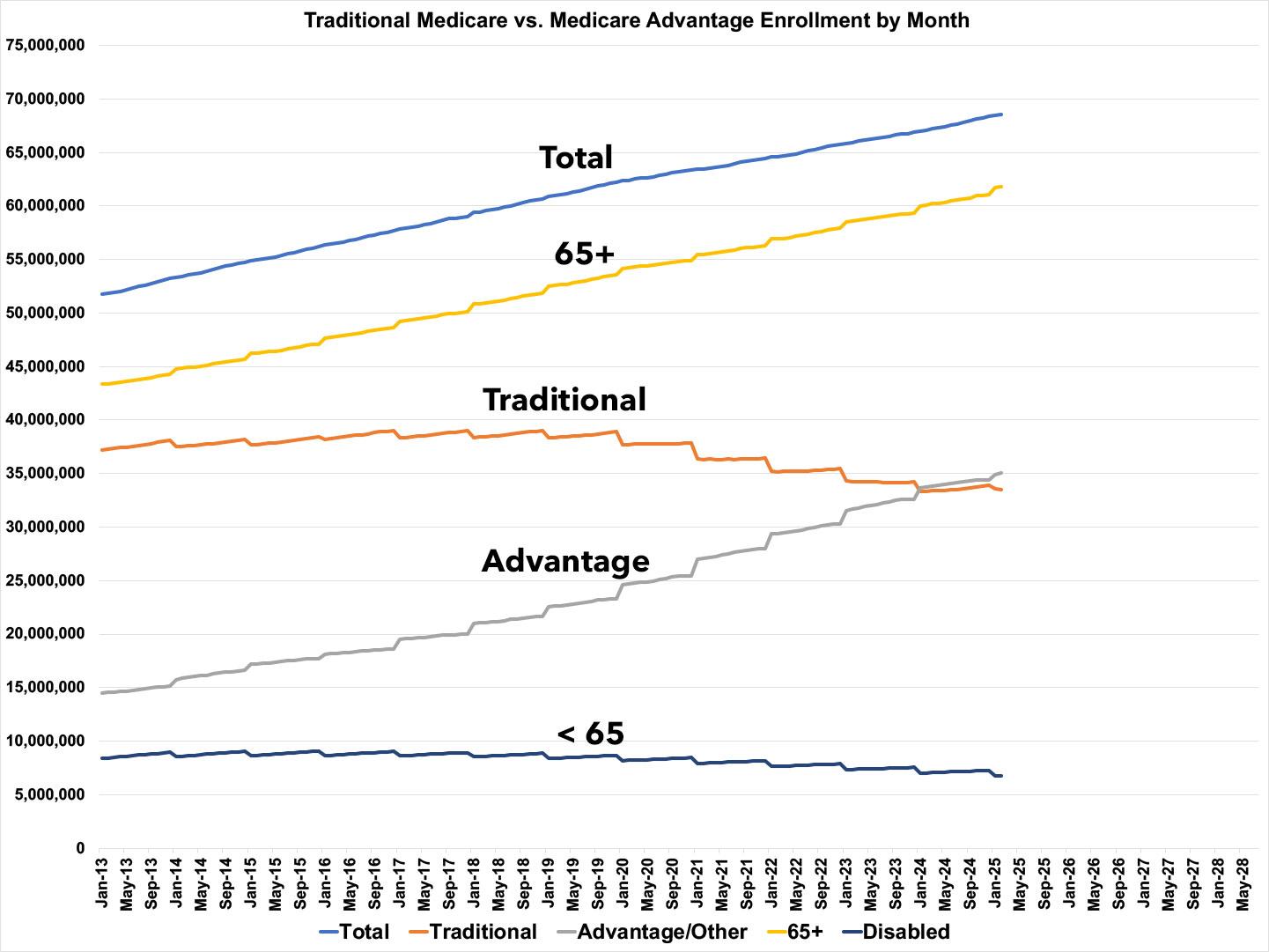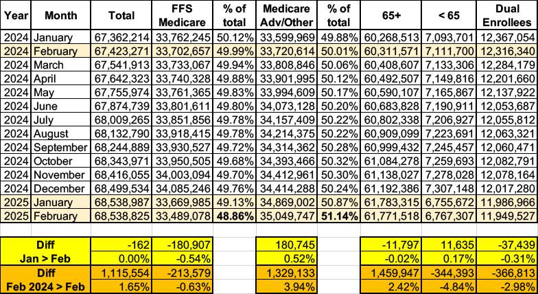 So far, after a 2-month initial delay, the Musk/Trump Regime has been posting updated Medicare enrollment data roughly once per month. We'll see if that continues.