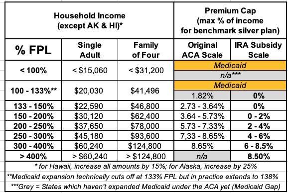 As I've explained numerous times before, the ACA's original premium subsidy formula was always far too stingy to make individual market policies affordable for many people...and worse yet, the subsidies cut off entirely for households making more than 4 times the Federal Poverty Level (FPL).