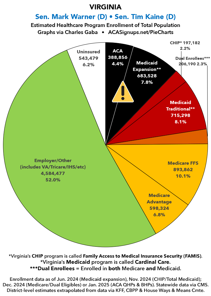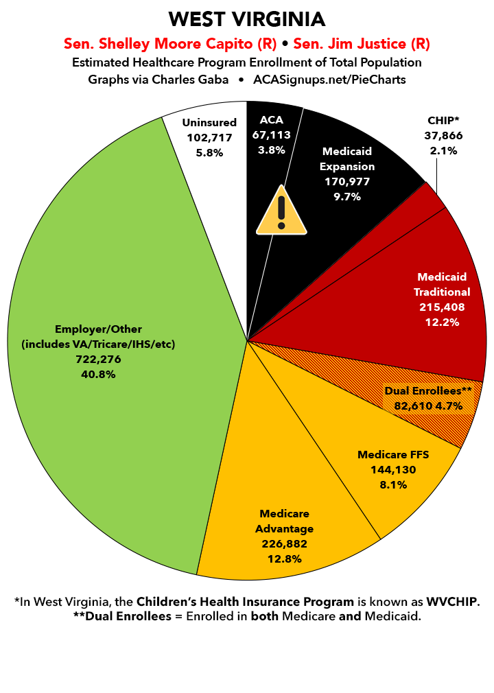 Meanwhile, below I've posted pie chart graphics highlighting just how many people are currently enrolled in both ACA exchange plans and ACA Medicaid expansion coverage. All told, they add up to nearly 46 MILLION Americans.