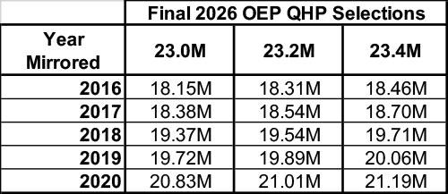 - 2025: OEP: 24.3M; Peak: 22.8M; Sept: 22.6M; Average: 22.40M?* (92% of OEP?)