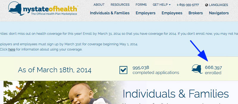 ...as of 9 a.m. today, 1,162,795 New Yorkers have completed their applications and 812,033 have enrolled for coverage since the launch of the Marketplace on October 1, 2013.