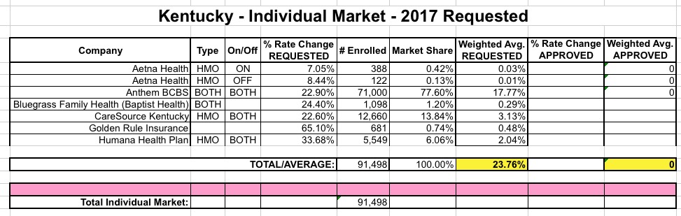 Overall, the weighted state-wide average requested rate hike on the individual exchange is 23.6%.