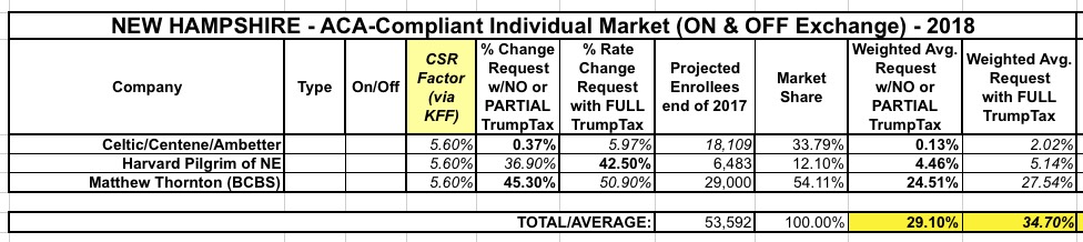 Finally, Kaiser assumes around a 10% Silver rate increase in NH if CSRs aren't paid, which translates into about 5.6% spread across the entire membership. Result: 29.1% if CSRs are paid, 34.7% if they aren't.