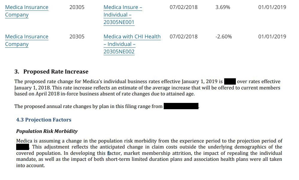 The Urban Institute projected that Nebraska rates would see a whopping 20.4 percentage point increase due to #MandateRepeal and #ShortAssPlans, which are both referenced in Medica's filing. Since they don't get more specific than that, I'm assuming 2/3 of Urban's estimate, or a 13.6% increase.