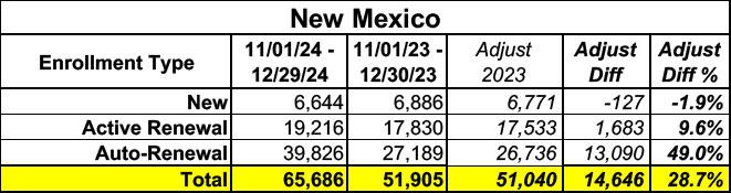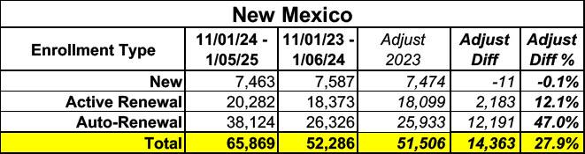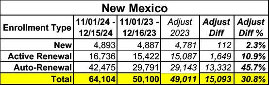 Not only is New Mexico's exchange enrollment up a whopping 28% vs. the same point last year, it's 20% higher than the 2024 OEP's final total of 56,472.