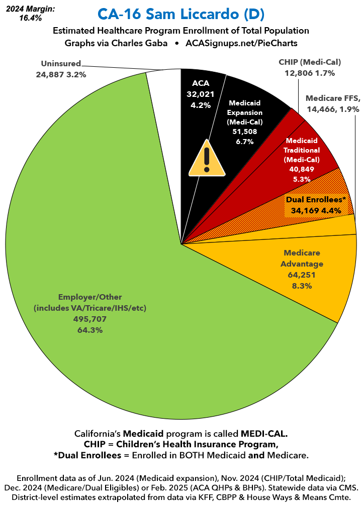 Over the past couple of months I've compiled a master spreadsheet breaking out enrollment in ACA plans (Qualified Health Plans & Basic Health Plans), Medicaid/CHIP coverage (both traditional & via ACA expansion) and Medicare (both Fee-for-Services & Advantage) at the Congressional District levels.