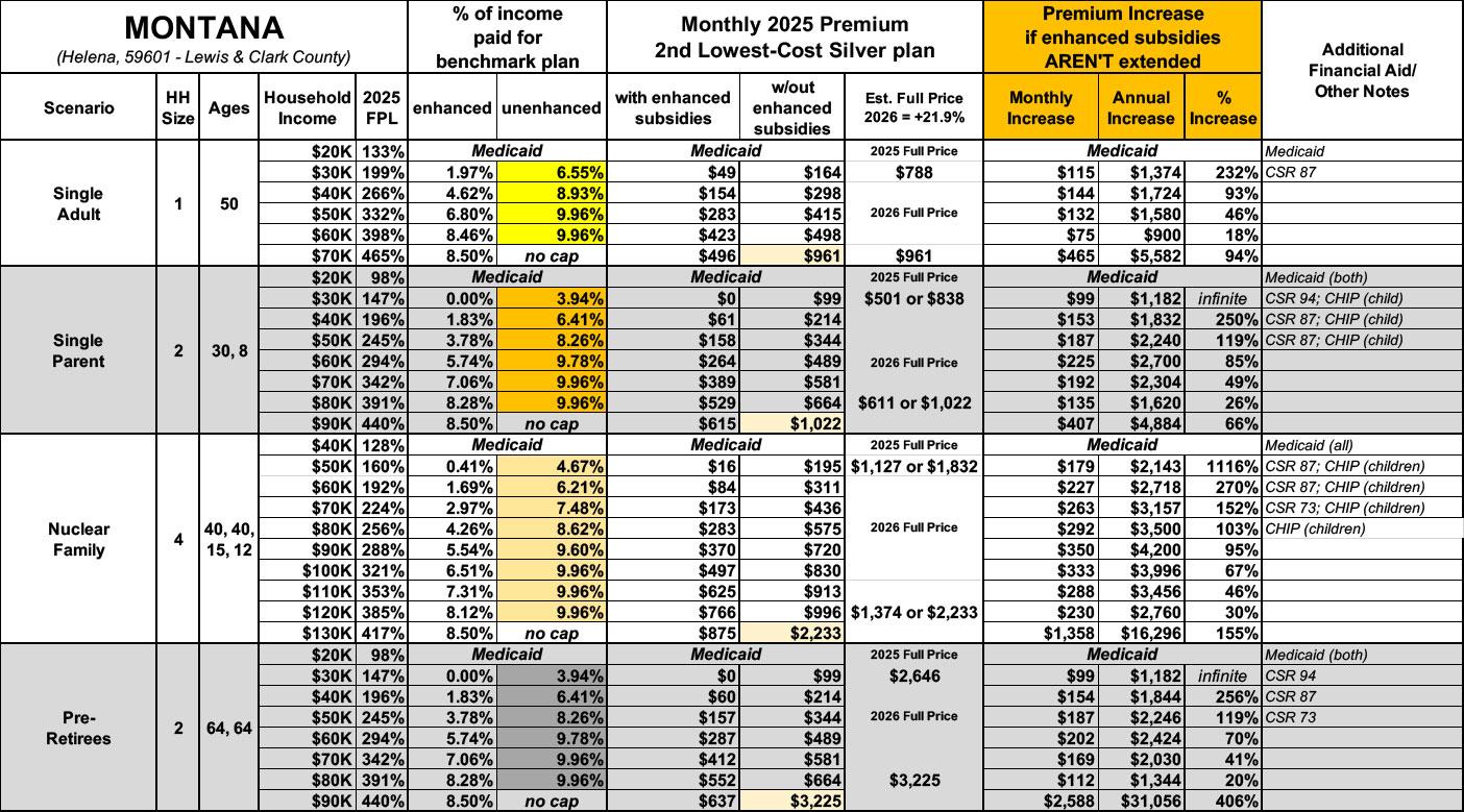 I decided to run the numbers myself to get an idea of just how much the combination of expiring IRA subsidies and the CMS "Affordability/Integrity Rule" will cause net premiums to increase starting in January 2026.