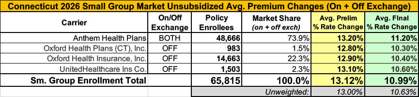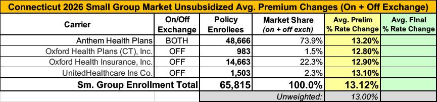 2026 Final Gross Rate Changes - Connecticut: +16.8%; ~156,000 enrollees are in for a major shock this fall (updated)
