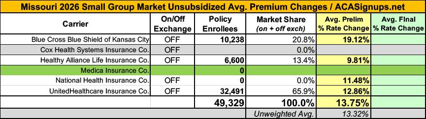 2026 Final Gross Rate Changes - Missouri: +23.1%; ~417,000 enrollees looking at massive rate hikes in January (updated)