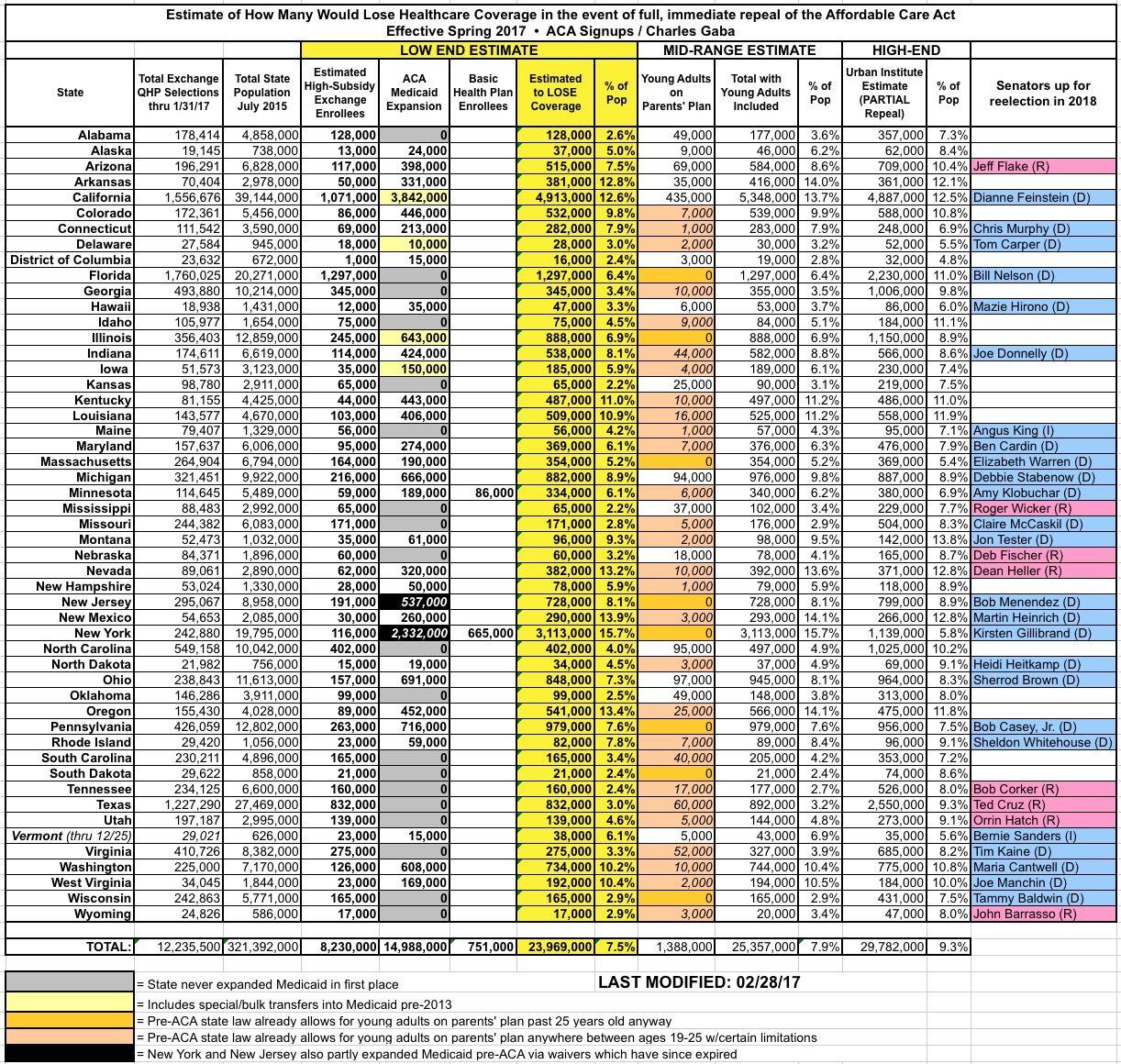 Remember: I'm only including those who I expect could lose their coverage, not the impact to Medicare, pre-ACA Medicaid, Group Coverage and so on.