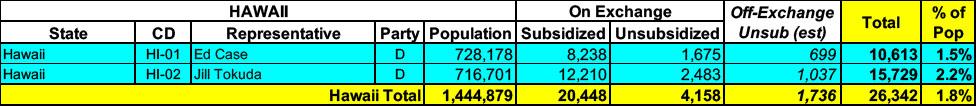 It's worth noting that Hawaii has a larger portion of its individual market enrolled in off-exchange policies than most states...around 37%, which means only 53% of the total indy market is subsidized at the moment.