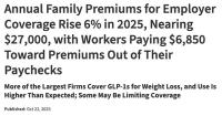 Annual Family Premiums for Employer Coverage Rise 6% in 2025, Nearing $27,000, with Workers Paying $6,850 Toward Premiums Out of Their Paychecks