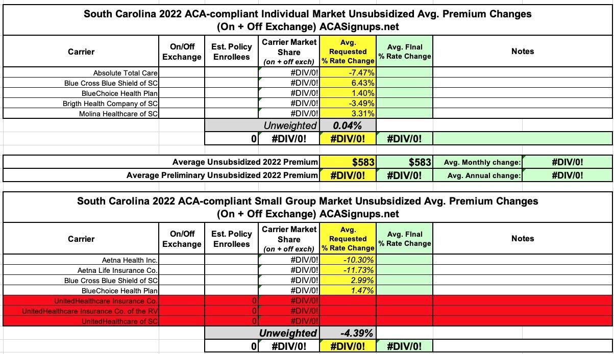 A week or so ago, I posted an analysis of the preliminary rate filings for South Carolina's 2022 individual & small group markets.