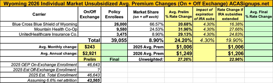 It was just a couple of weeks ago that the official (if preliminary) 2026 ACA individual market rate filings for Wyoming insurance carriers went live on the federal rate review website.